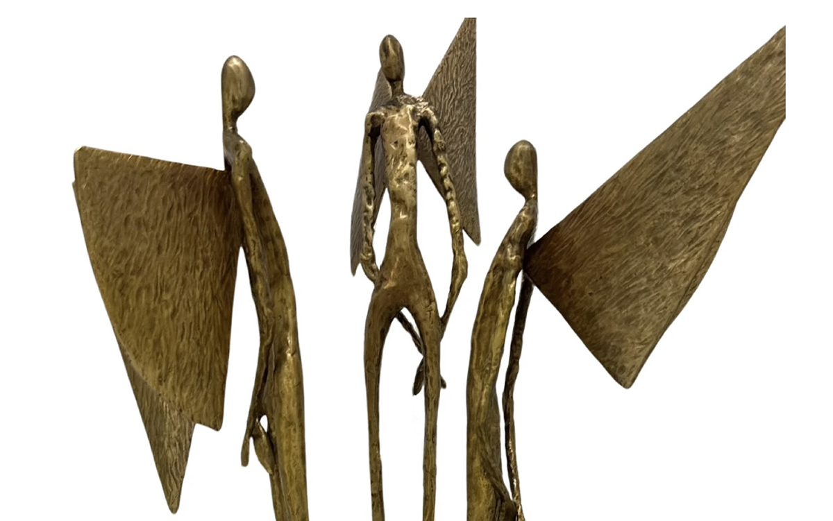 Curiosities is not simply an object but a meditation. Cast in bronze, it presents two intertwined elements: sails and figures. The sails rise like great shapes of wind and fabric, their curves recalling the unpredictable nature of existence. They are metaphors for the unseen forces that move us—circumstance, time, chance—yet they also signal direction. In Da Silva’s hands, the sails remind us that we cannot control the winds, but we can steer the vessel.