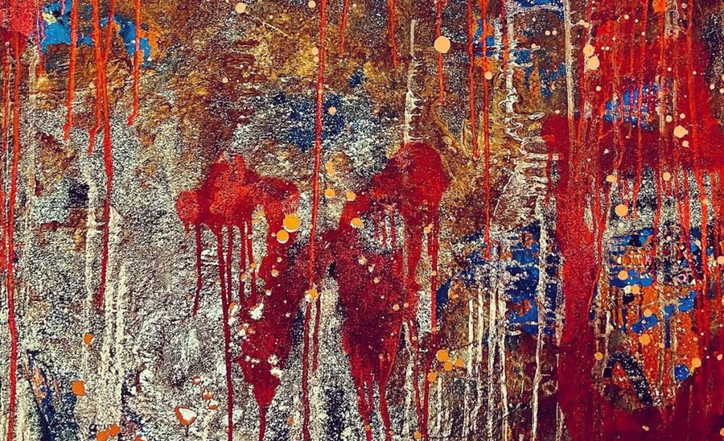 At first glance, the canvas feels almost urban—its gestures suggest tags left in haste, a kind of coded urgency scribbled into the surface. Red asserts itself, sharp and unavoidable, a reference to blood but also to defiance. It’s the kind of red that lingers, not decorative but insistent, refusing to be ignored. For Lola, red often carries double weight: it speaks of violence but also of vitality, a reminder that life and threat are never far apart.